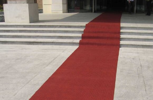 - Una alfombra de vinilo con respaldo para aplicaciones en interiores.